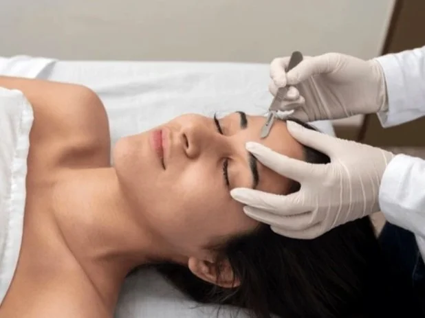 Dermaplaning is a non-invasive exfoliation treatment that removes dead skin cells and vellus hair (peach fuzz) using a specialized surgical scalpel. This gentle yet effective procedure reveals smoother, brighter skin, enhances skincare absorption, and creates a flawless base for makeup. Dermaplaning can improve the appearance of fine lines, uneven texture, and dullness, leaving your skin instantly refreshed and radiant with no downtime.